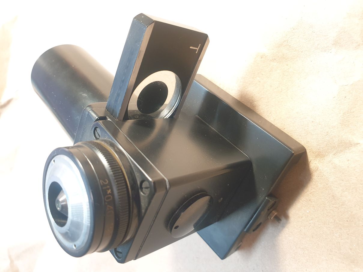 Корпус и оптика без внешних повреждений, салазки ходят, темнопольная вставка целая. Установлен объектив 21х0.40 тубус 190.